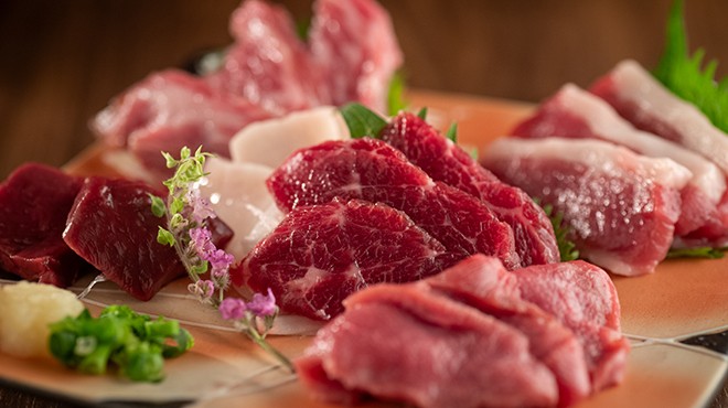 熊本の阿蘇あか牛、天草の新鮮魚介、熊本野菜、全国の旬の味覚、銘酒(日本酒,ウイスキー)をご堪能下さい。
