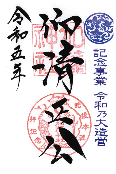神社と熊本城が切り絵風に描かれたご朱印帳が授与できます。