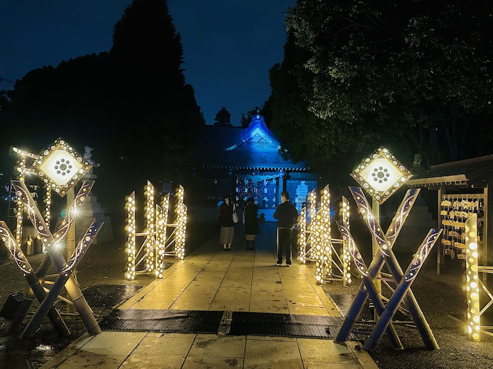 出水神社裏手の竹林も竹あかりでライトアップされ幻想的な雰囲気の中を回遊できます。