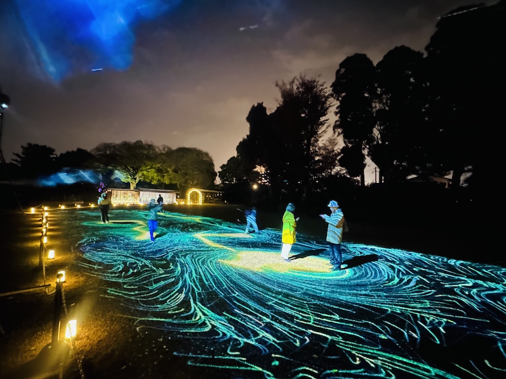 プロジェクションマッピングが地面いっぱいに広がり幻想的な雰囲気の中、多くのお子さんが走り回ってました。