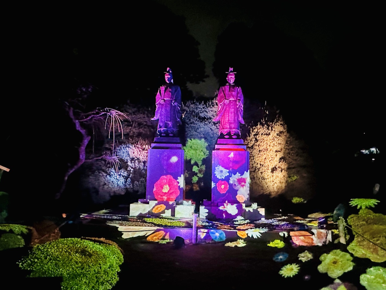 細川忠利公と細川藤孝公の像もプロジェクジョンマッピングされていました。