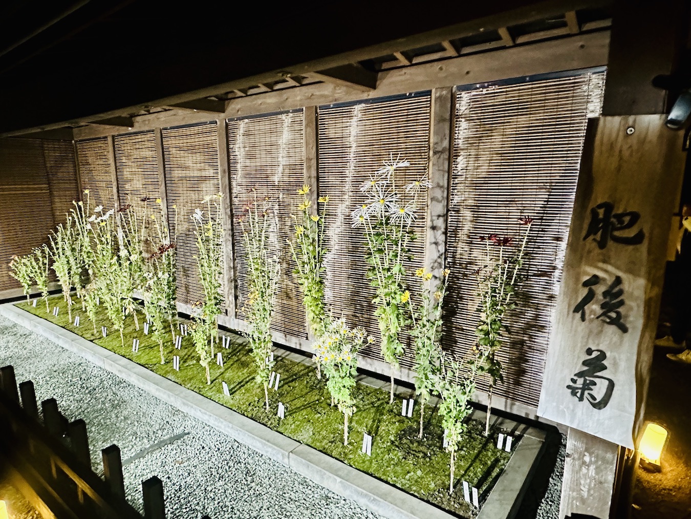 会場内で肥後菊の展示があり、こちらもライトアップしていました。