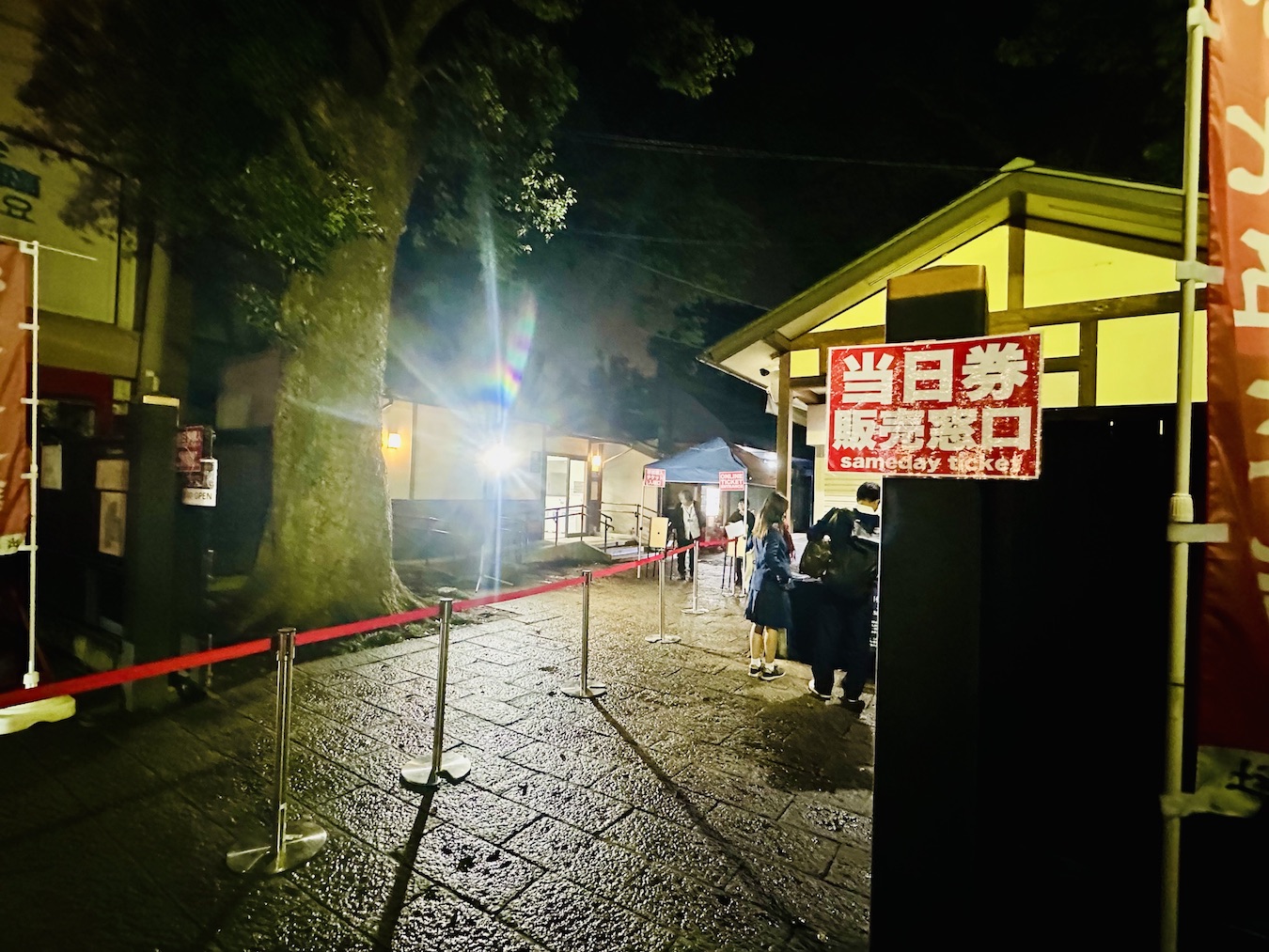 正面の赤い鳥居から入場します。入り口は事前のWEB購入者と当日チケット購入者に別れて入場します。