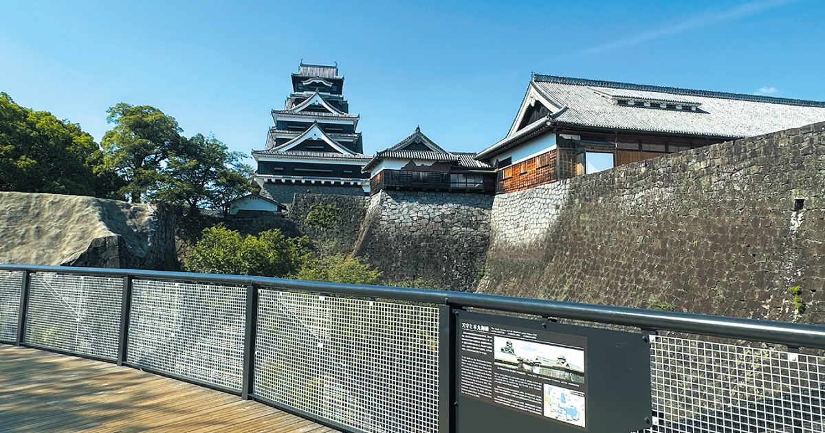 熊本地震後の被害状況や復興工事の様子を見学できる高さ6mの特別見学通路。今まで見ることができなかった高さからの熊本城の見学は格別。