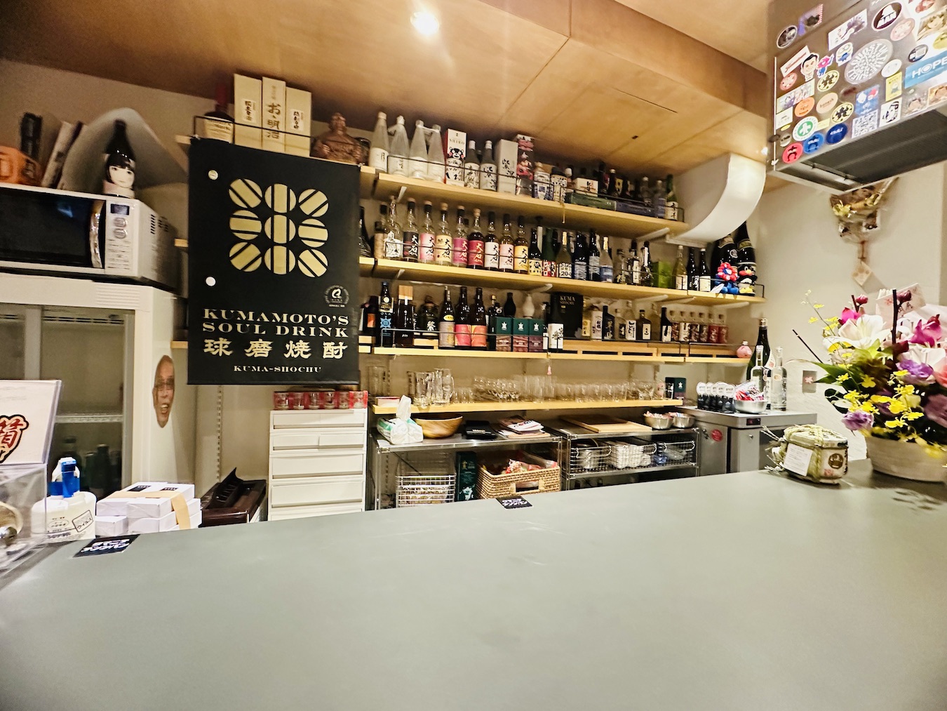 来店者は年齢もバラバラでお酒が飲めるようになった大学生も通ってきます。球磨焼酎を求めて観光客も飛び込み来店し、著名人の来店もあり日々面白い展開が起きており人脈が広がる予定調和がない場だと思います。