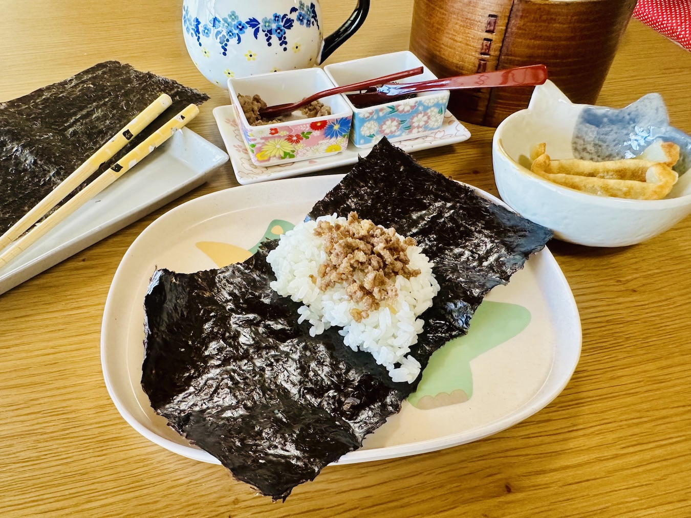 手巻きおにぎりは2セット作れるので海苔とご飯・具材の量をバランスよく考えながらつくるのも楽しいですね。