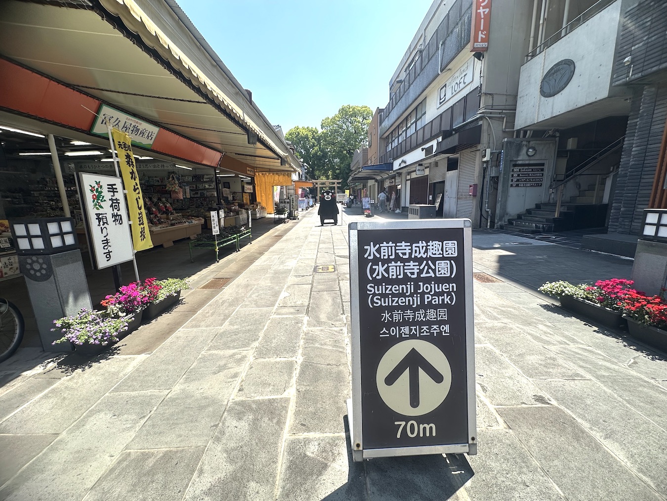 場所は水前寺成趣園の正面入口に続く水前寺参道にあります。