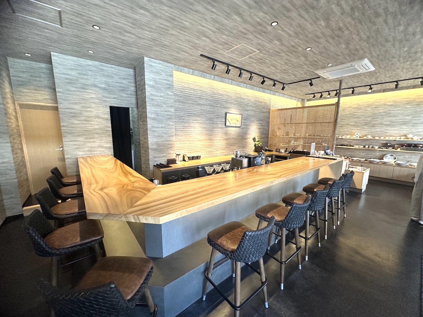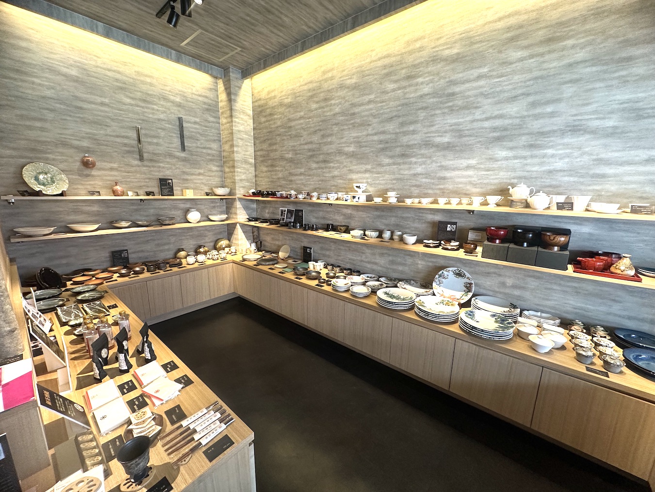 店内は、L字のカウンター席10席になります。個人的なオススメは正面カウンターではなくL字のカウンター席です。店内右側に陳列されているセレクトされた器を眺めながら食事ができますよ。