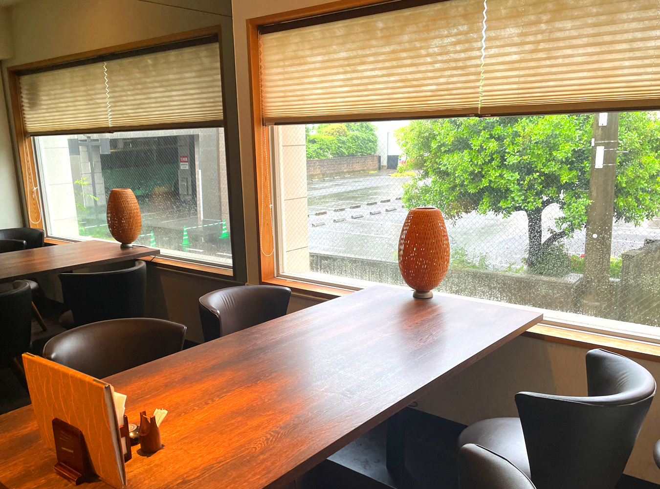 窓際のテーブル席では外を眺めながら食事を楽しむこともできます。