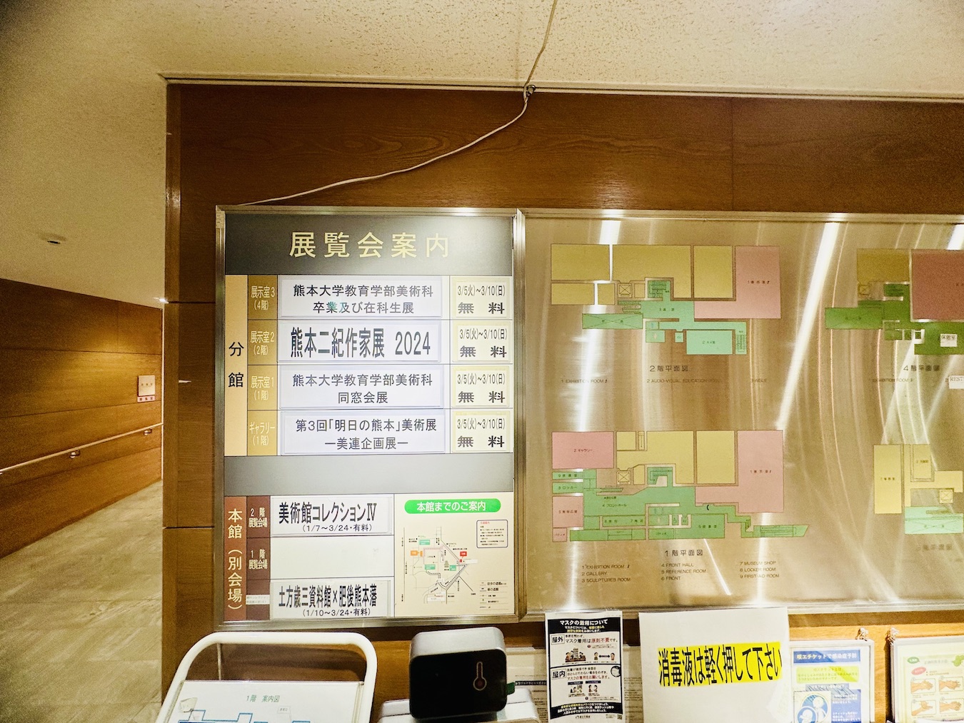 1階の正面玄関を入ると受付があるので、展示会の場所確認等はここで確認をしてください。