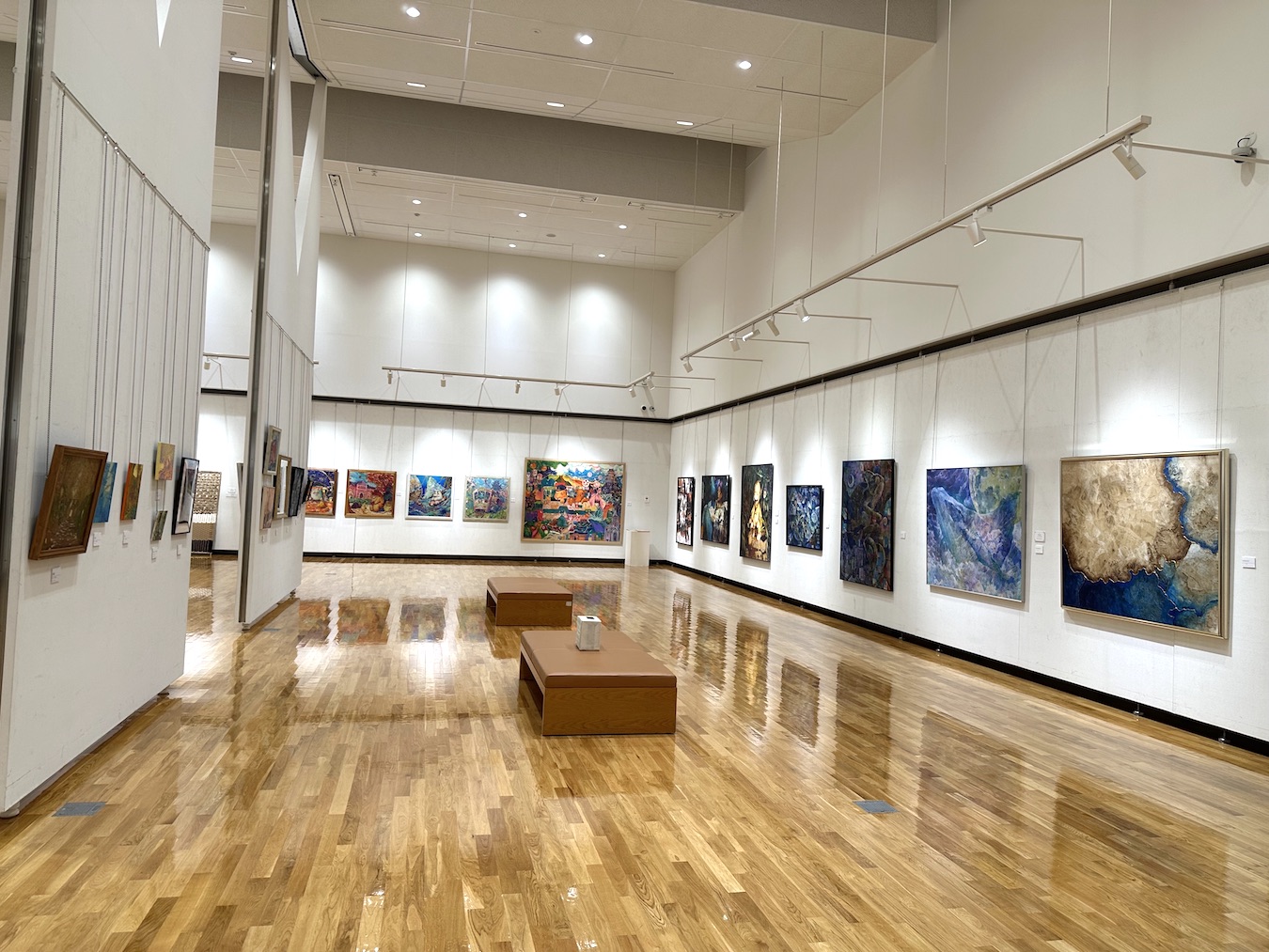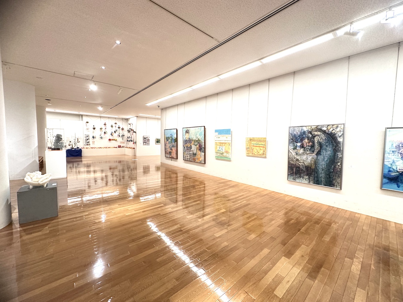 展覧会の展示室が4階に1つ(展示室3)。2階に1つ(展示室2)、1階に展示室1とギャラリーがあります。