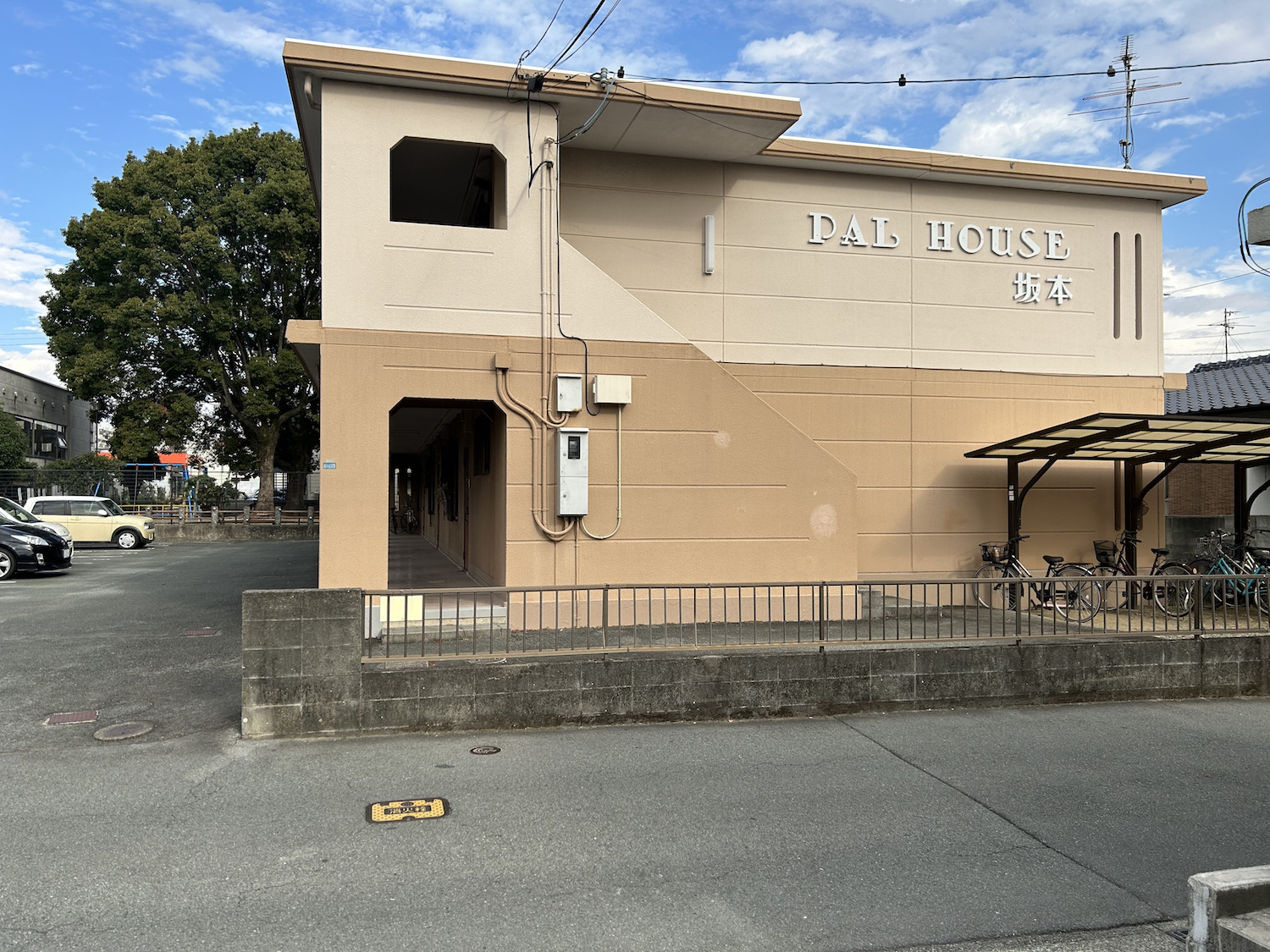 駐車場は伊庵前に2台分、先のアパート「PAL HOUSE坂本」に1台分あります。駐車場の番号は7番です。
