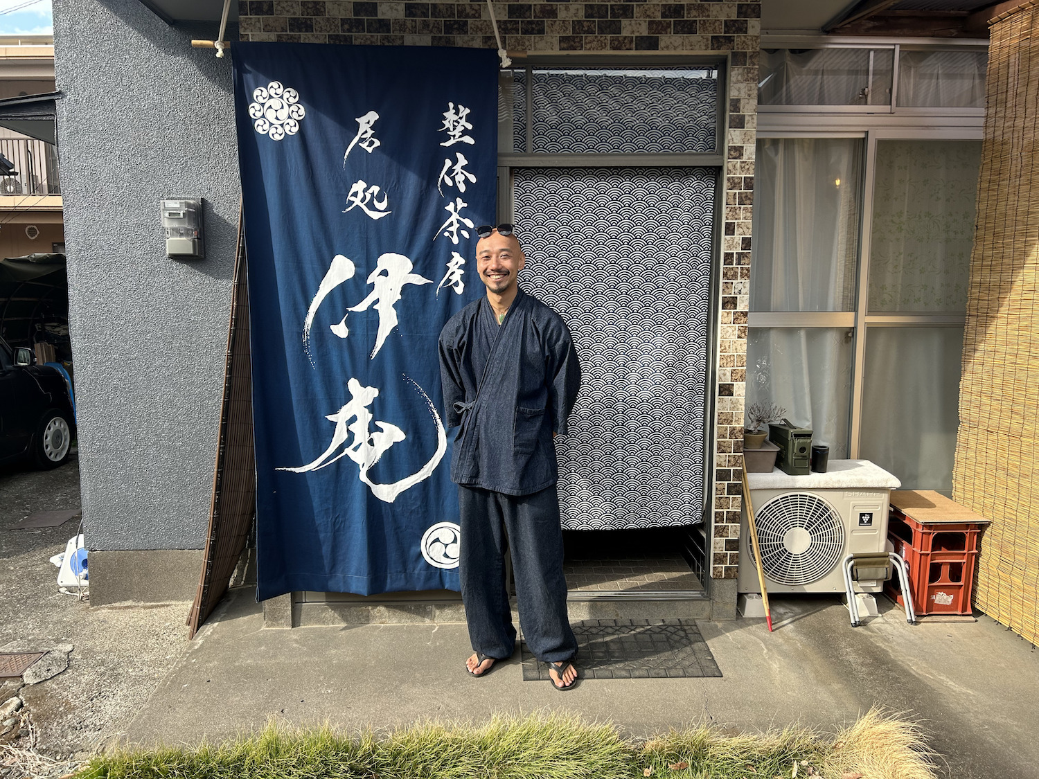 建物玄関には伊庵ロゴをあしらった紺色の店頭幕があるのでそれを目指して訪問しました。