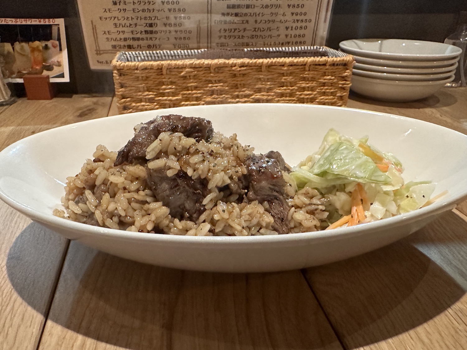 付け添えのコールスローも黒胡椒がきいててビーフwithライスにマッチします。